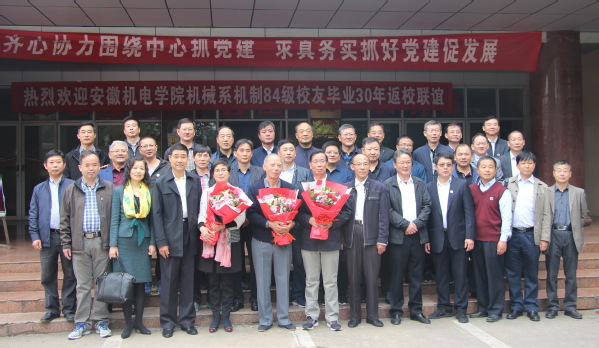 校党委副书记、校友会会长苏国红,校发展规划处处长、校友会(校友基金会)秘书长曹安照以及机械学院的党政领导热情接待了毕业三十年返校的老校友。大家在纪念展板上签名留念并合影,每个人的脸上都洋溢着幸福的微笑,内心难掩重逢的激动。