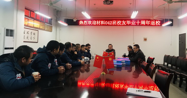 12月8日,Bl小说 迎来了材料042班校友毕业十周年返校联谊活动。学院党委书记伊长文、副院长朱协彬热情接待了返校的校友们。材料系主任冒国兵、时任辅导员和教师代表参加了校友返校座谈会。