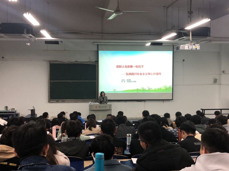 开班仪式结束后,马克思主义学院的彭鸿雁教授为培训班进行了第一次专题讲座。彭教授以“扣好人生的第一粒扣子”为主题,从“是什么”、“为什么”、“怎么做”三个方面为学员详细阐述了社会主义核心价值观的内容,以及践行社会主义核心价值观的意义。彭教授强调价值观是我们的终极行为指南,在日常的生活学习中,我们不仅要注意个人价值观的培育和引导,还要践行集体中的核心价值观。社会主义核心价值观是当代中国精神的集中体现,是全体人民共同的价值追求,培育和践行社会主义核心价值观,关系到社会的和谐安定、人民的幸福安康。