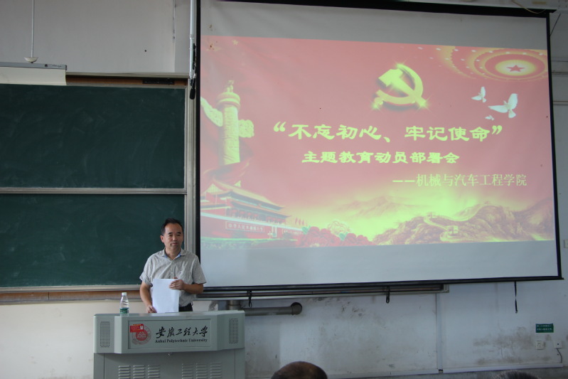 根据学校工作部署,机械学院党委于918日下午在6215教室举行“不忘初心、牢记使命”主题教育动员部署会和集中学习会,近300名党员参会。