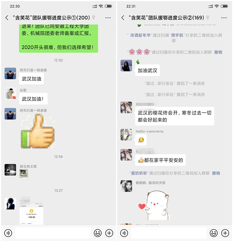 Bl小说 “含笑花”志愿者团队的同学们也注意到了这些揪心的求助公告,仔细搜索并分析了海量的援助方法与渠道,与在一线的医疗人员沟通,在校团委和院团委的监督指导下于1月25日00:00发起了“驰援湖北 公益募捐”行动,学院各班级和团支部积极响应。