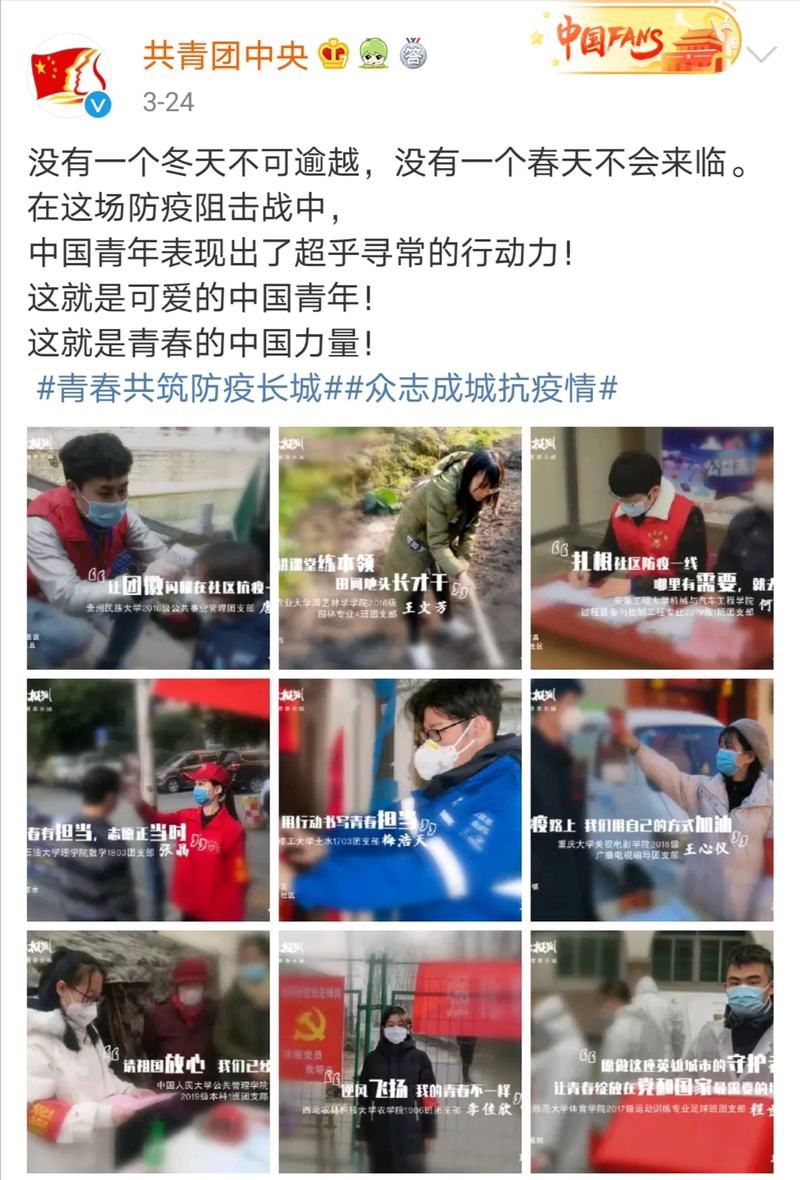 疫情发生后,学校根据疫情防控工作安排,指导全校团学组织发挥自身优势,分级开展线上宣传和教育引导。机械学院广大先锋团员青年们积极主动响应,此刻青春在担当!志愿服务道路上,从来不是一个人,他们“疫”往直前,践行初心,用爱心和行动传递了抗疫的决心与信心,用执着和高昂的热情发挥优秀团员青年的先锋模范作用,诠释了新时代青年的责任与担当。他们的行动,为徽程学子树立了良好的社会形象,为Bl小说 增光添彩。