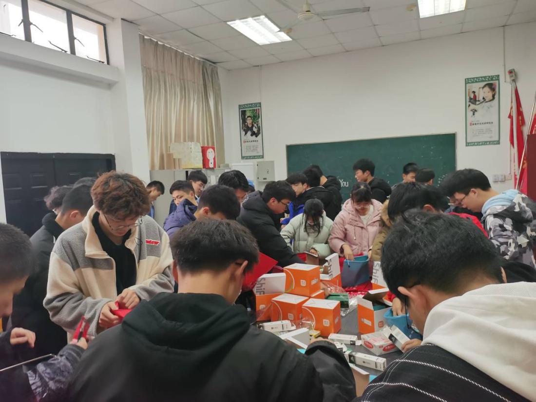 (学院团委学生会骨干正在分装考研爱心文具袋)