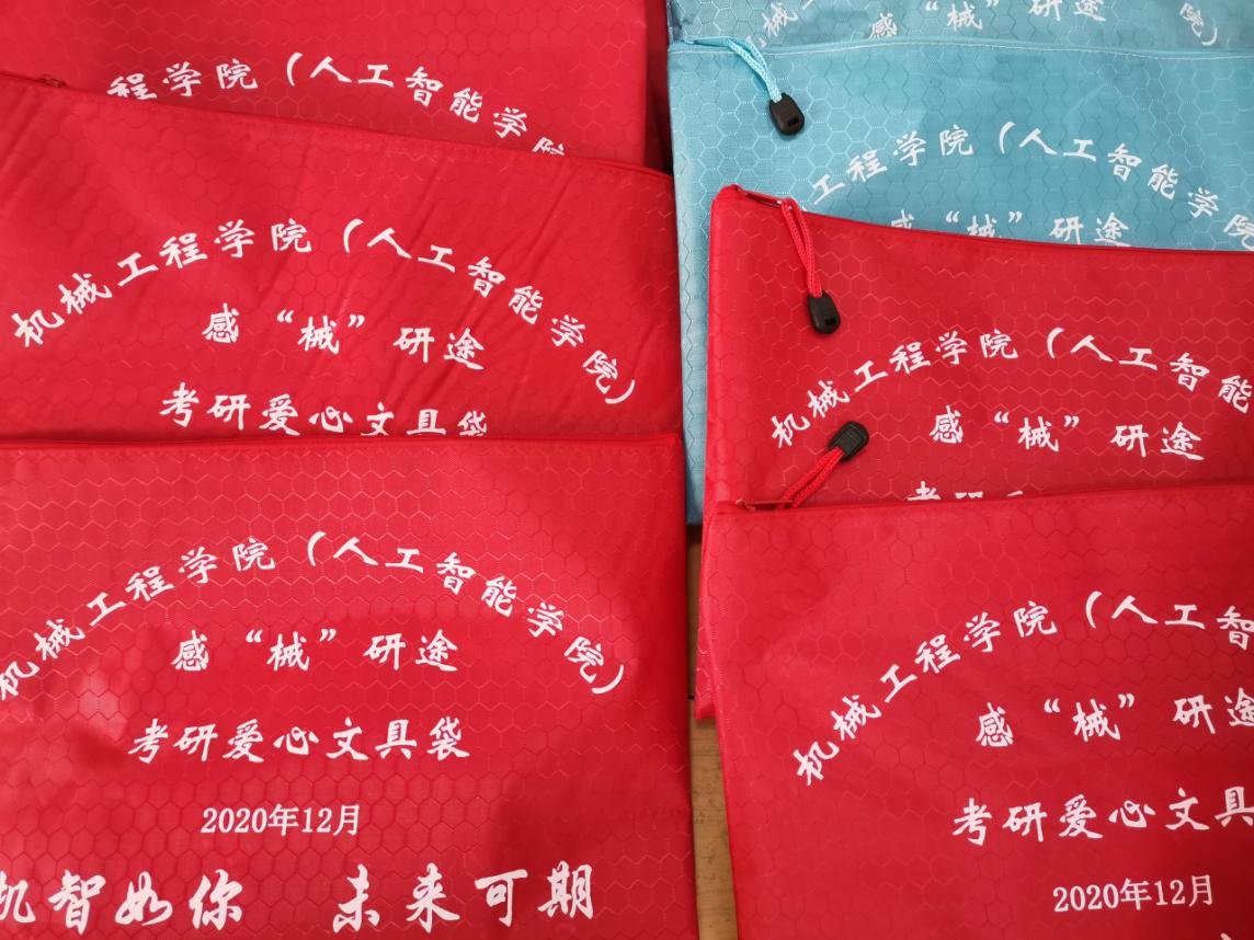 活动前期,新生辅导员张璐、从宏超指导2020级学生用心为学长学姐书写了524份考研祝福语。“今年一‘研’为定,明年定为‘研’一”“心有多大,舞台就有多大,相信自己,一定行!”“祝学长、学姐考研顺利上岸,愿你们在2024年等我。”“亲爱的学长学姐,祝愿你们象牙塔下梦成真,只手可摘理想院校的星辰。”“亲爱的学长学姐,即使你我尚未谋面,我愿予你我最好的祝福!......既然决定了考研,我相信你肯定是一个有自制力,有毅力,有恒心的人......愿你心之所向,皆为美好!加油!”......一句句温馨的祝福语为考研学子带来了温暖,同时也激励着低年级学子奋发有为。有的学生志愿者还在祝福卡上画上了生动形象的卡通画。随后,程雷老师组织院团委学生会学生骨干为考研学子准备了考研爱心文具袋。每个爱心文具袋配备了专用答题卡铅笔、圆珠笔、橡皮、套装专业绘图仪器等考试用具及一份祝福卡。