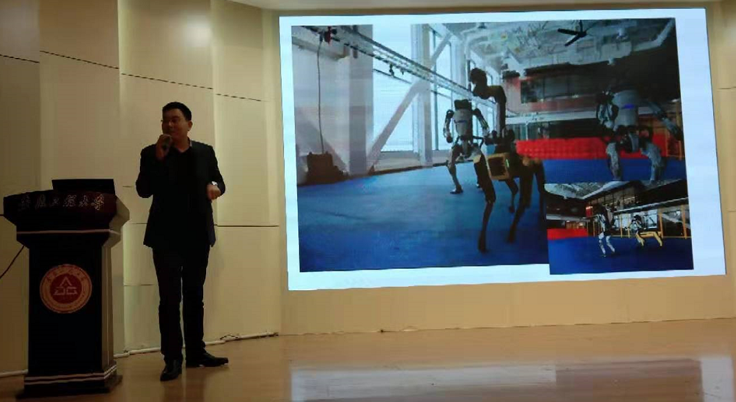 陈锋博士毕业于中国科学技术大学近代物理系。中国人工智能与机器人教育委员会专家委员,中国自动化学会会员、安徽省机器人学会常任理事、中科深谷科技发展有限公司创始人董事长、合肥工业大学智能制造技术研究院机器人公共服务平台负责人,他以“人工智能与智能网联汽车”为主题,从四次工业革命讲到目前正处于利用信息化技术促进产业变革的智能化时代,智能网联汽车依托信息通信技术实现车与(人、车、路、云端等)智能信息交换、共享,保证“安全、高效、舒适、节能”行驶。他还着重讲述了世界自动驾驶汽车技术的发展历程、国外(美国、德国、英国、法国、日本等)智能网联汽车的发展现状、国内智能网联汽车的发展水平和奋斗目标。为同学们描绘了汽车电动化、智能化、网联化、共享化的发展蓝图,并号召同学们认真学习基础理论知识,关注智能网络汽车的核心技术,特别是以深度学习为代表的AI技术、激光雷达等先进传感器技术、自主式智能与网联式智能技术融合,以及高速公路自动驾驶与低速区域自动驾驶系统的应用技术等。