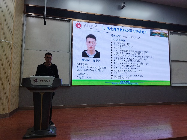 大四毕业班优秀考研学生程子龙(拟录取到中国科学技术大学)、陈树楷(拟录取到华中科学技术大学)、刘甜甜(拟录取到华东理工大学)三位同学做了精彩深刻的发言。三位同学一致认为,大学生从一开始就要明确目标,通过不断努力和实践,一定会在大四毕业之际获得大丰收,不给大学生涯留下遗憾。