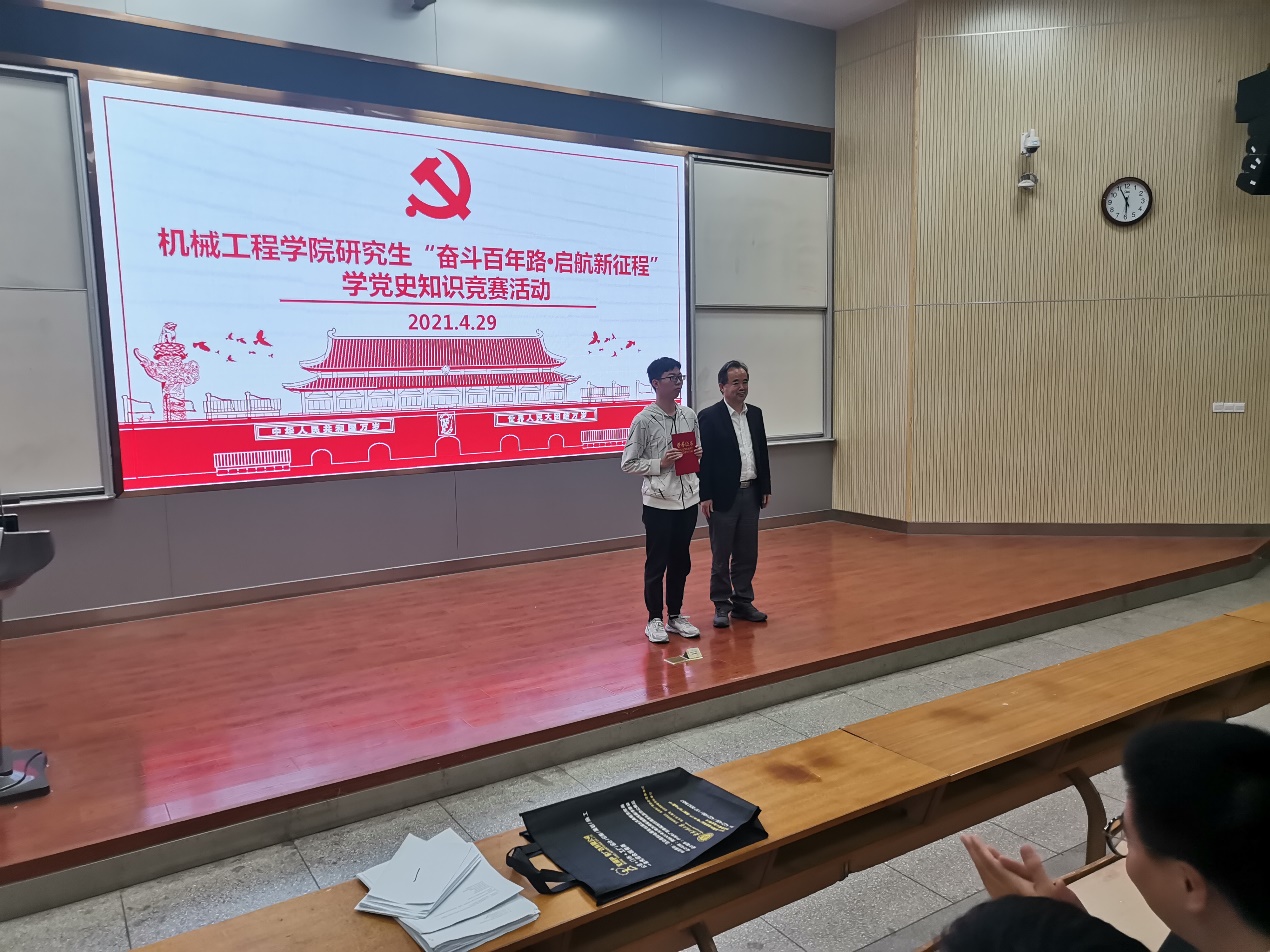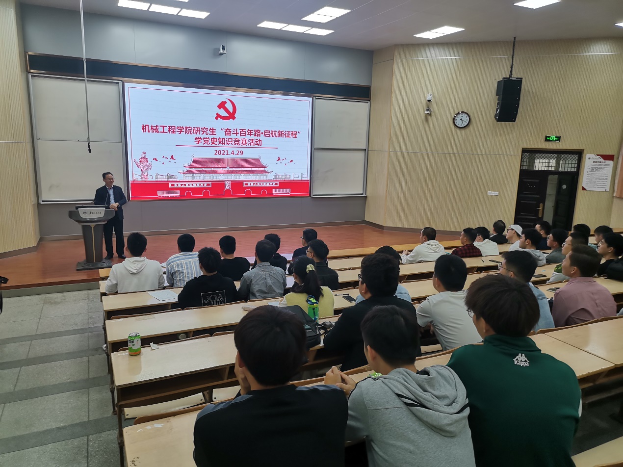 为引导研究生了解党的光辉历史,进一步加强党史学习教育, 4月29日,机械工程学院(人工智能学院)举办了研究生“奋斗百年路·启航新征程”学党史知识竞赛活动。学院党委书记伊长文,副院长王建平,正处级组织员朱尚玉等出席了活动。活动由研究生党支部书记鞠锦勇老师主持。