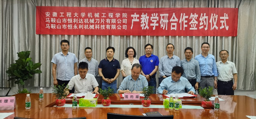 会后,在政府、学院、企业三方的共同见证下,机械工程学院和马鞍山市恒利达机械刀片有限公司、马鞍山市恒永利机械科技有限公司签署了产教学研合作协议和多项技术开发协议。