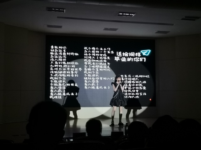 中场游戏环节,大朋友,小朋友都踊跃参与其中。大家都沉浸在欢乐的气氛中。朗诵表演《毕业》直穿心灵,通过真挚的朗诵与观众进行心灵上的沟通。胡孔夫的《不会成真的梦》,瞿啸森、李唯诣带来的吉他乐《星空剪影》,方彦涵的《十年》用歌声、吉他声带领观众感受听觉盛宴。面对离别,仍要大声说出:“不说再见”。大合唱《不说再见》将气氛推向了高潮,观众与演唱者共同歌唱,共同挥手,共同与那些曾经的美好说再见。