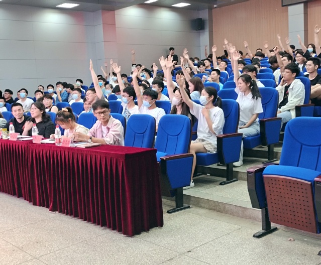 中场的党史知识抢答环节十分激烈,现场的同学积极举手回答,尽自己最大努力为所在团支部取得最好成绩加油,现场的气氛达到了空前的热度。下半场,选手们围绕“学党史 强信念 跟党走”展开团课宣讲,宣讲主题明确,立意深刻、内容详实,讲解慷慨激昂,表达出青年团员爱党爱国的情怀,让大家感受到新时代团员青年立志永远跟党走,奋斗新时代的铮铮誓言。