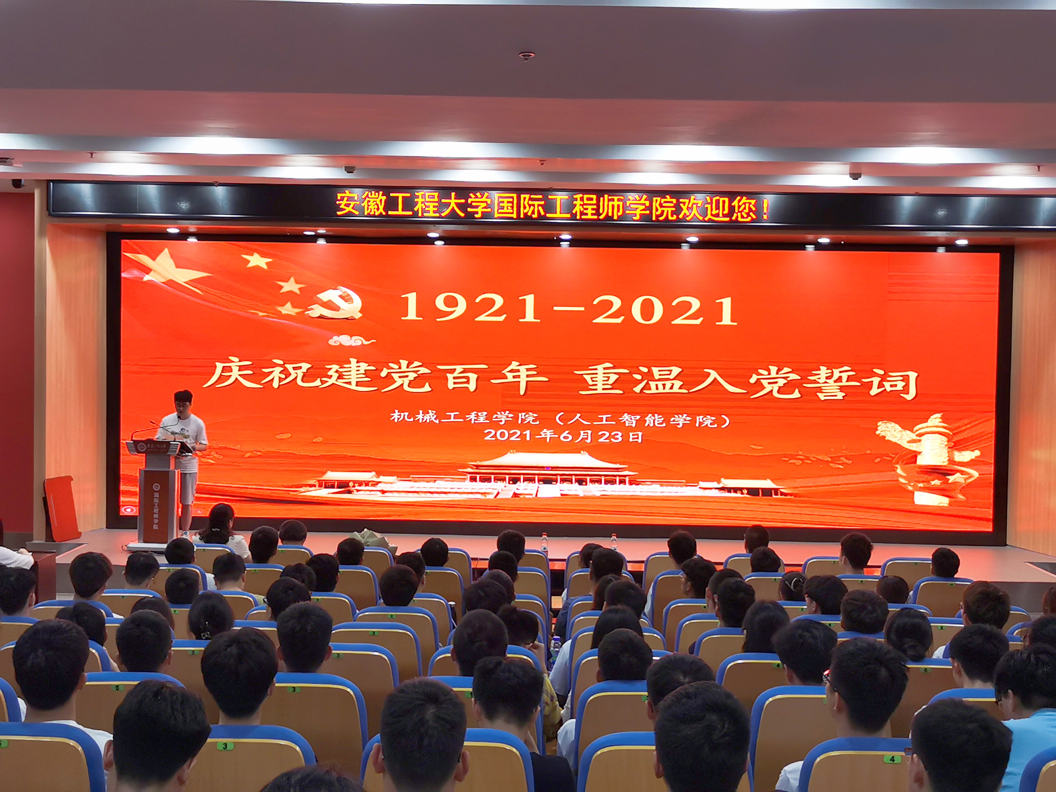 为庆祝中国共产党成立100周年,深入推进党史学习教育,623日下午,机械工程学院(人工智能学院)在国际工程师学院大报告厅举行“庆祝建党百年,重温入党誓词”主题党日活动。学院党委副书记李文江、教师党员代表、20182019级全体学生党员以及研究生支部党员代表参加党日活动,活动特别邀请离退休党委苏自林老师参加。活动由学生支部书记王海燕主持。