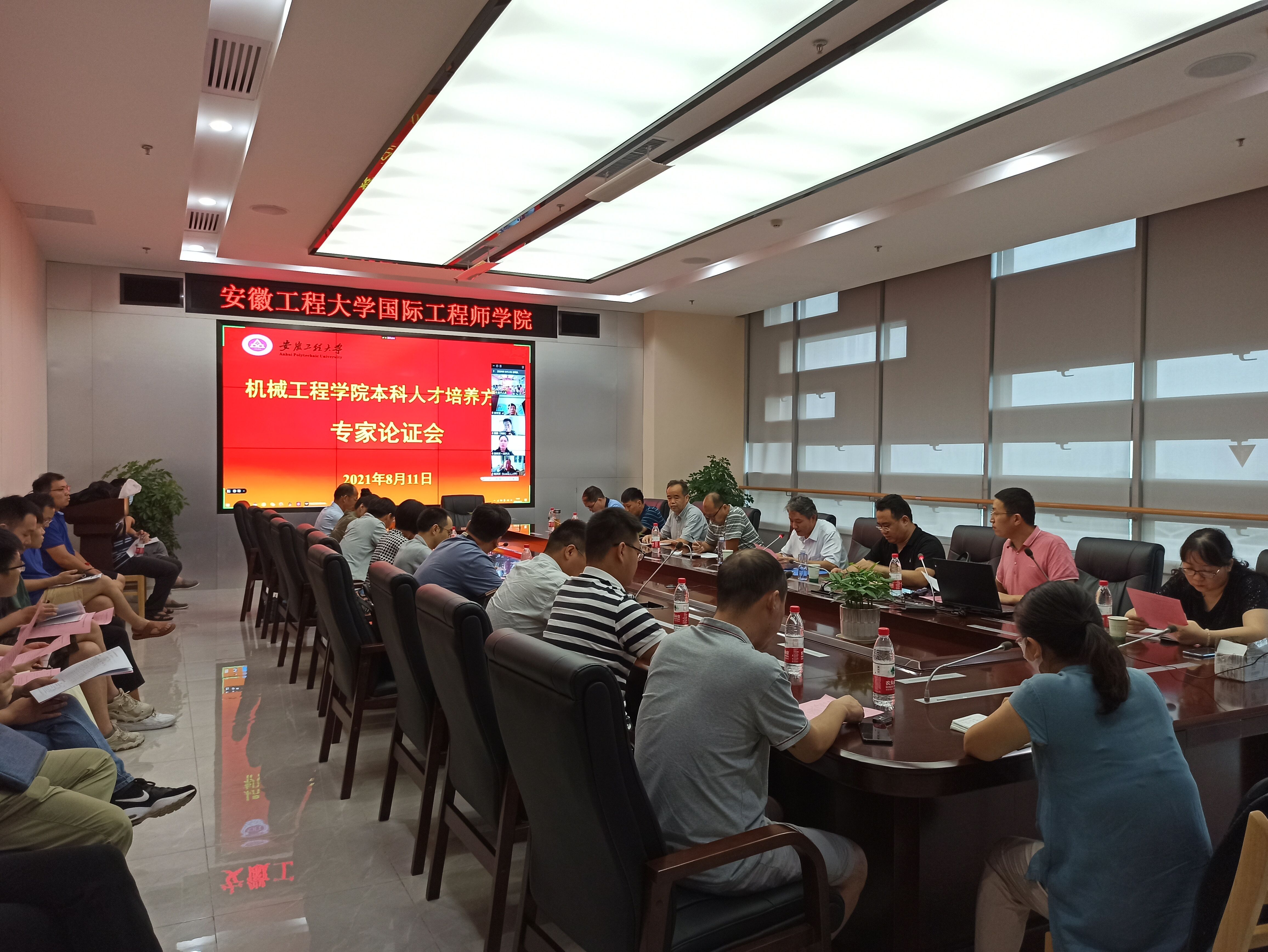8月11日下午,机械工程学院在国际工程师学院校区图文中心7楼会议室以线上线下相结合方式召开学院2021版本科人才培养方案专家论证会。论证专家组由教育部机械类专业教学指导委员会委员、南京理工大学袁军堂教授担任组长,中电科芜湖钻石飞机制造有限公司研究院院长曾锐研究员、奇瑞汽车股份有限公司研发总院底盘模块总监刘慧建高级工程师、北京科技大学机械工程学院副院长郑莉芳教授、安徽理工大学机械工程学院副院长杨洪涛教授、南京航空航天大学机电学院设计工程系主任黄巍教授、Bl小说 教务处副处长贾文友教授、机械工程学院教授委员会全体委员为专家组成员。会议由院长许德章教授主持,学院全体党政班子成员、教学秘书、各系部主任/副主任、专业教师代表、2021级新生辅导员参加了会议。