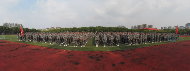 在学生的欢呼声中,各连长依次入列整队。大会在雄壮的国歌声中拉开帷幕。何志恒指出,军训是推进素质教育、为国家培养造就高素质人才的重大举措。军训的目的,除了练技术,练体力,提高军事素质外,更重要的是增强组织纪律性,锻炼坚强意志。希望广大同学能够树立勇于磨练、敢于摔打的信心和勇气,在严格训练中砥砺奋斗精神,在团结协作中健全人格品质,以实际行动交出一份合格的答卷。
