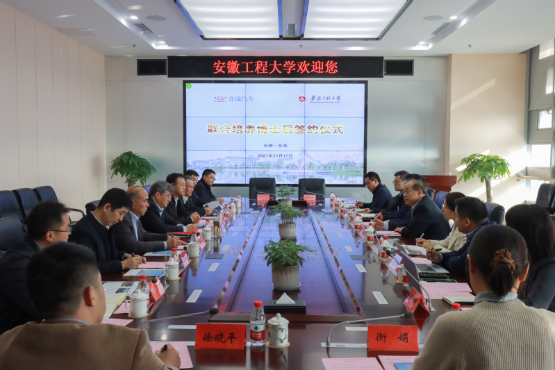 为深化校企合作,实现高层次人才共享共育,11月17日,在国际工程师校区,学校与奇瑞汽车股份有限公司举行联合培养博士后签约仪式和赠车活动。芜湖市人才发展集团董事长杨少华,奇瑞汽车股份有限公司副总经理李康等一行,校党委副书记、校长王绍武,副校长叶常林,校党委常委、副校长费为银及有关部门负责人出席会议。会议由叶常林主持。