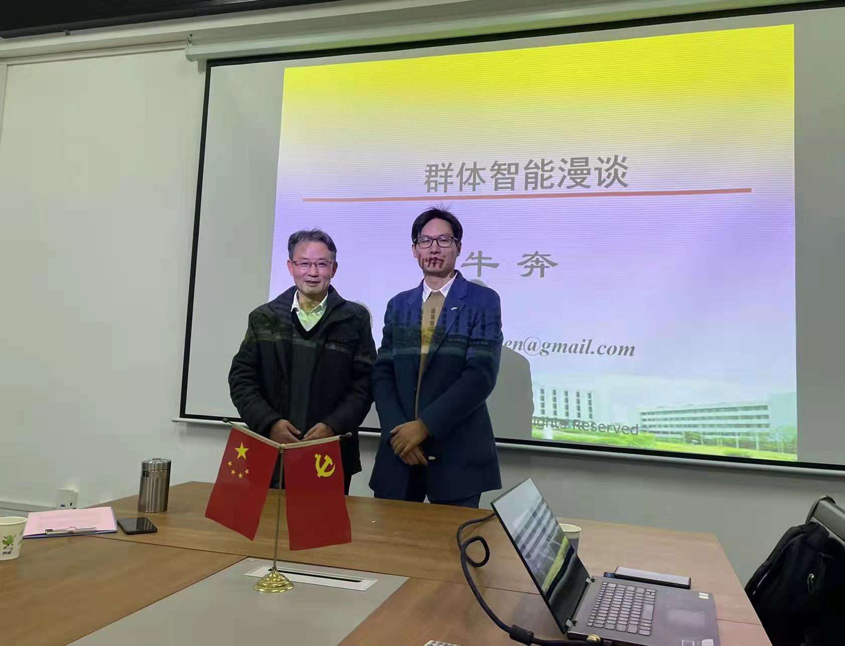 11月27日下午,在A座815会议室,深圳大学教授、博士生导师牛奔来校为广大师生作了一场题为《群体智能漫谈》的精彩报告。机械工程学院(人工智能学院)院长许德章教授、部分教师和研究生一起聆听了报告。