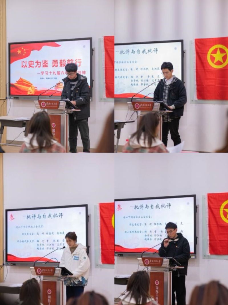会议在庄严的团歌中拉开帷幕。首先,张研汇报了团支部一年来的工作开展情况,尤其是党史学习、习近平总书记“七一”重要讲话精神学习情况以及本次组织生活会的准备情况。青马班学员杜尧带领大家学习党的十九届六中全会精神并分享了心得体会。接下来,支部委员带头开展批评与自我批评、其他团小组成员依次作对照检查,大家在肯定成绩的同时更多的是查找自身存在的不足和差距,提出整改的措施和下一步努力的方向,现场气氛严肃认真。最后,开展团员先进性评价民主测评投票评议,评议全程严格遵循公开、公平、公正原则,保证了结果的真实性和客观性。