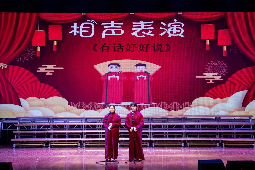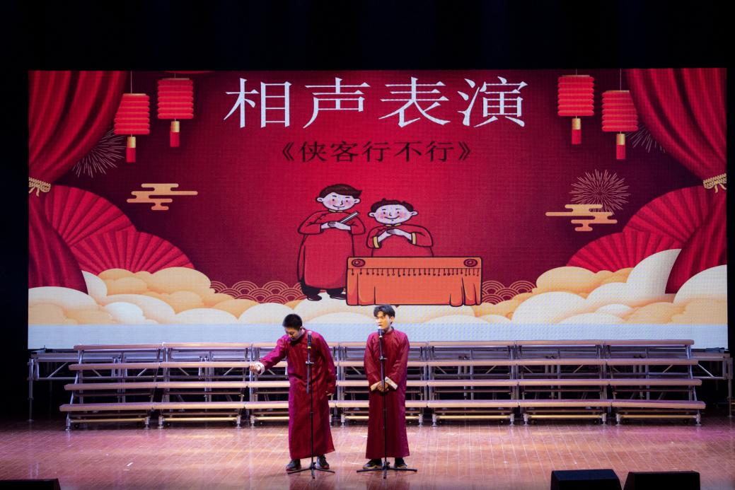 古典扇子舞《万疆》中翩婉的舞姿演绎了中华的风华正茂,展现出华夏的生生不息;相声《侠客行不行》雅俗共赏,趣味横生,在谈笑中领悟不一样的人生道理;小品《英雄》用幽默诙谐的方式诉说着同学们对英雄的理解;花式篮球《灌篮高手》朝气蓬勃,充满激情,引得现场尖叫连连;中华汉字的传统源远流长,相声《有话好好说》带领在场师生领略了语言的魅力;学生歌曲联唱《燕归巢》《塑料袋》《残酷月光》,阵阵歌声或悠扬轻柔或激情豪迈,引得在场师生忘我跟唱。