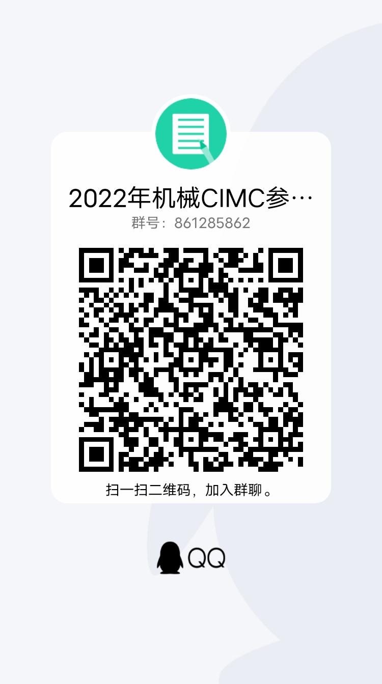 2. 参加比赛的同学请加入学院“2022年机械CIMC参赛群”QQ群:861285862,后期相关信息会在群内公布,相关问题在群内解答。