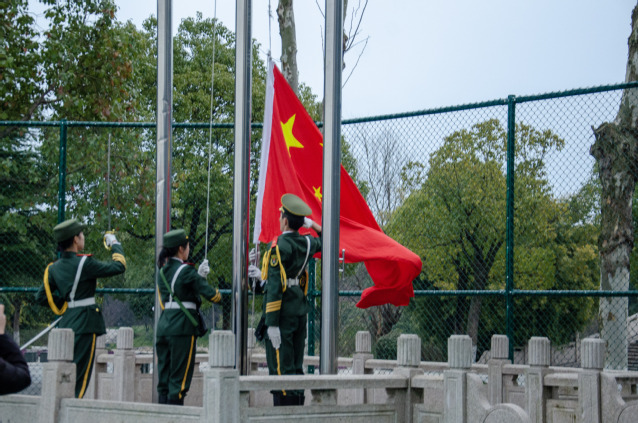 6时40分,国旗护卫队队员迈着雄健的步伐,护卫国旗走向升旗台。雄壮的《义勇军进行曲》奏响,擎旗手振臂一挥,鲜艳的五星红旗冉冉升起,全体师生着装整齐,注目肃立。随后,学生代表智能科学与技术211班张超在国旗下演讲并带领大家庄严宣誓:坚定理想,刻苦学习;磨练品质,德才兼备;锻造才能,提升素质。不忘初心,青春朝气永在!争做新时代的奋斗者和追梦人!