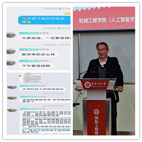 考研是一场持久战,考验着广大学子们的毅力和心态。机械工程学院(人工智能学院)全体教师为鼓励2022届学生备战考研,助力学生的考研梦,一直在辛勤付出,默默守护!