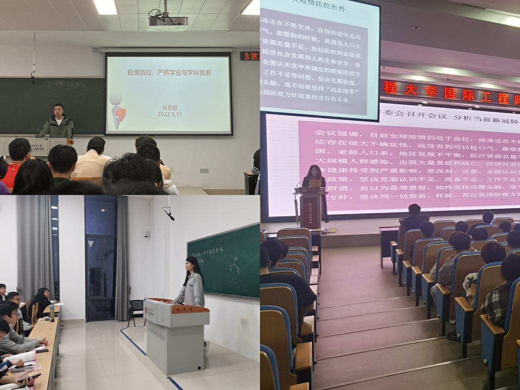 学校自5月6日有序解除校园封闭管理,转入常态化疫情防控模式以来,为进一步筑牢疫情防控防线,机械工程学院(人工智能学院)辅导员组织召开新冠肺炎疫情防控主题班会,重点学习了5月5日中央政治局常委会会议精神和习近平总书记系列讲话精神,对五月份学风建设、宿舍卫生、考研与就业指导、心理健康教育等重点工作进行部署。