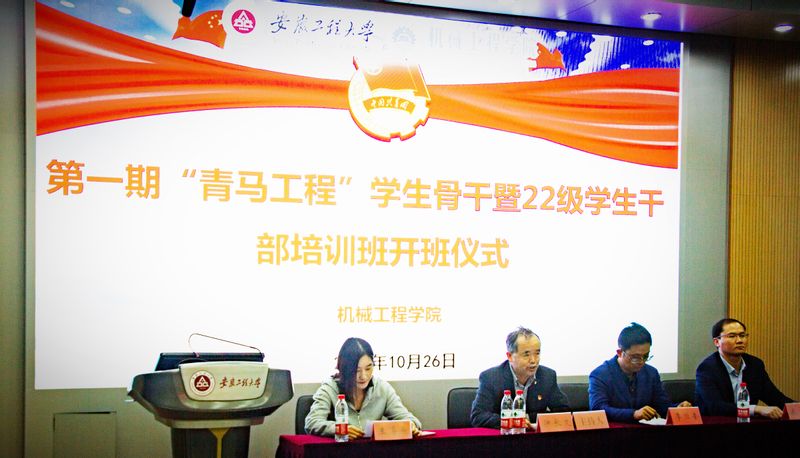 为深入贯彻落实学校“三抓”要求,强化青年学子的思想政治引领,10月26日晚上19:30,机械工程学院在5教117举办第一期“青马工程”学生骨干暨22级学生干部培训班开班仪式。校团委副书记兼党委学生工作部副部长李恒奎,机械工程学院党委书记伊长文、党政办公室主任秦广虎、团委指导教师王海燕、2022级辅导员徐倩、孙志鹏及全体学员参加开班仪式。开班仪式由伊长文主持。