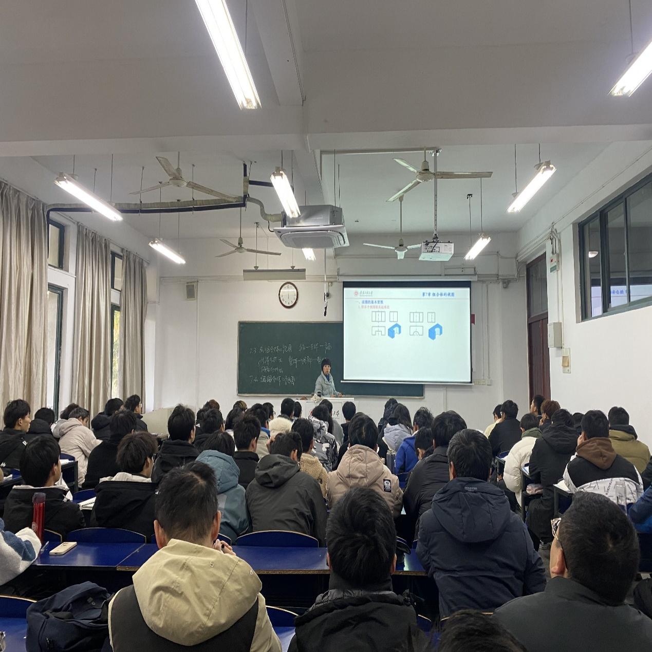 石平老师讲授课程为《画法几何及机械制图I》,主要讲授内容为读组合体的视图。石平老师采用引导启发式的教学模式,板书和多媒体完美结合,PPT制作精巧,图文并茂,并充分利用三维建模软件建立组合体的模型,使复杂的空间结构变得直观易懂,整个课堂互动良好,学生在老师的引导下认真思考,积极回答问题,课堂气氛活跃。