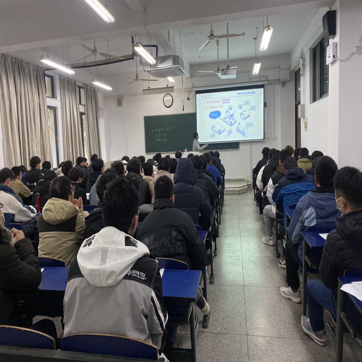 石平老师讲授课程为《画法几何及机械制图I》,主要讲授内容为读组合体的视图。石平老师采用引导启发式的教学模式,板书和多媒体完美结合,PPT制作精巧,图文并茂,并充分利用三维建模软件建立组合体的模型,使复杂的空间结构变得直观易懂,整个课堂互动良好,学生在老师的引导下认真思考,积极回答问题,课堂气氛活跃。