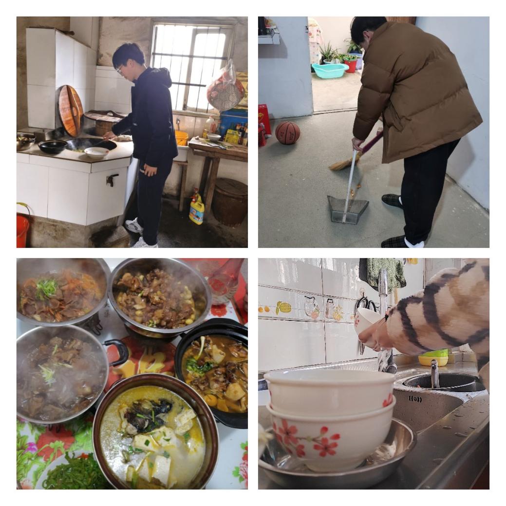 以家务为“眼”,看劳动之“美”。家庭是教育的起点,家务劳动是增进亲子感情的有效方式。活动期间,学院以各类群团组织、学工队伍为抓手,多渠道动员学生参与到年夜饭、贴春联、做卫生等家务中来,在劳动中体会父母不易,提高动手能力,感受收获劳动成果的喜悦。