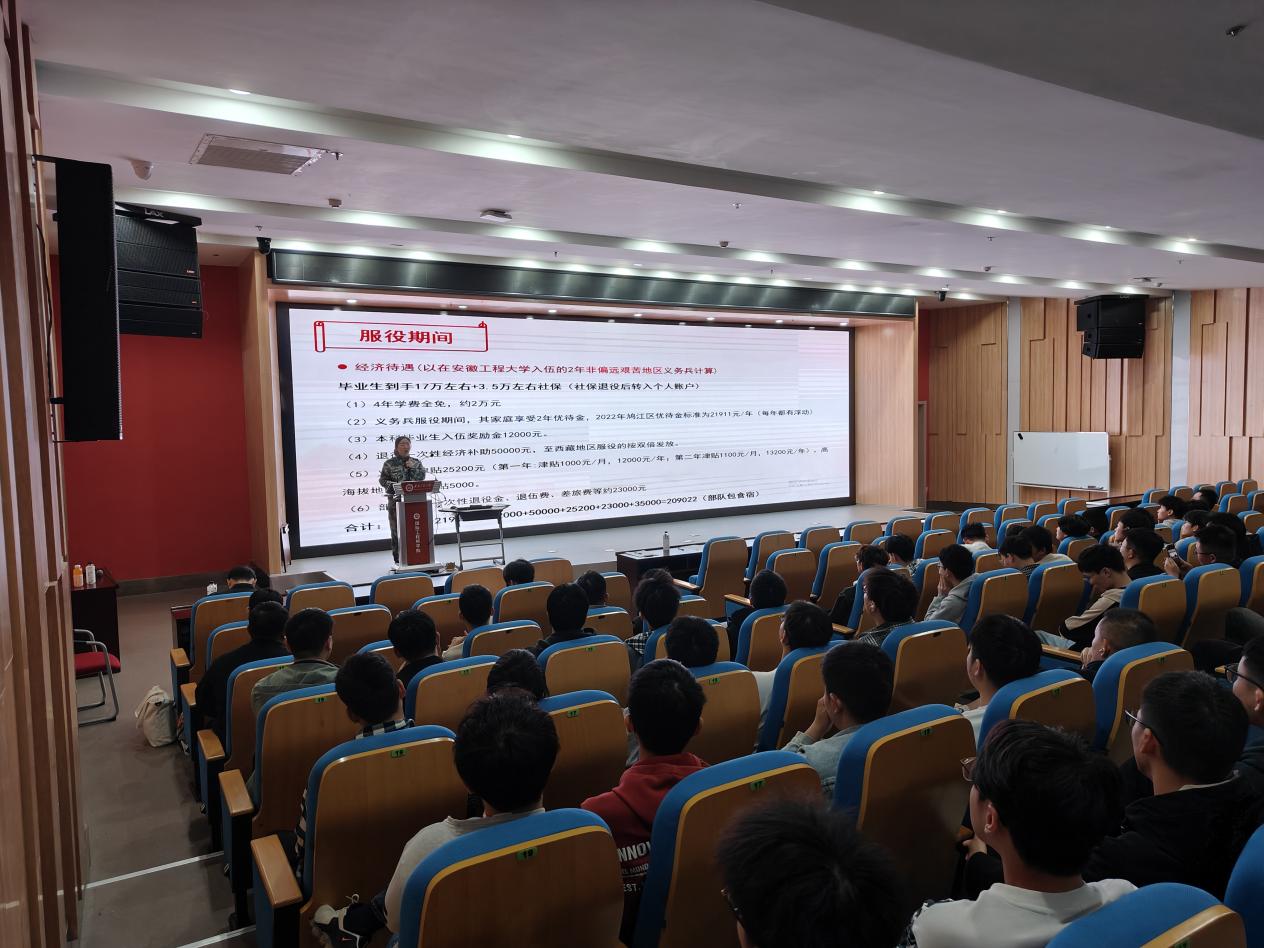 为切实做好2023年下半年征兵工作,激发广大学子投身军营、献身国防的爱国热情,鼓励和引导在校大学生积极应征入伍,4月14日,机械工程学院联合校征兵工作站对学院毕业班学子进行征兵动员。机械工程学院党委副书记秦广虎,校征兵工作站赵成婧老师,Bl小说 优秀退伍军人机制196汤鹏程同学,毕业年级辅导员和毕业班学生出席了本次活动。