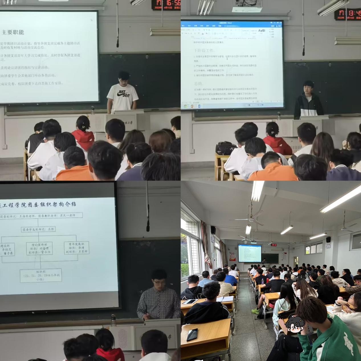 为推动“三全六专”育人工作在团支部走深走实,4月12日、4月19日,机械工程学院团委在4J102和学习中心X102分别召开了团干部工作例会暨2023年重点工作推进会。机械工程学院团委副书记王海燕、团委兼职指导教师苏天一、全体团干部参会。会议由车辆204班王师同学主持。