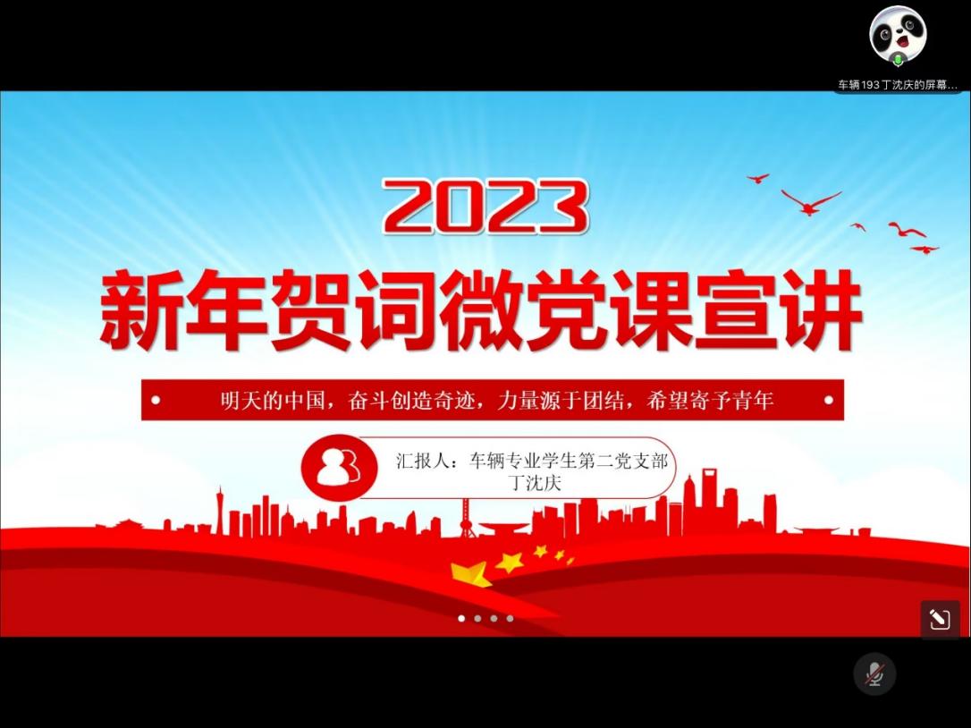 车辆专业学生第一党支部的王留东同学,车辆专业学生第二党支部的丁沈庆同学和交通支部的胡俊杰同学,组建成微党课宣讲团,分别围绕“五个牢牢把握”、“习近平总书记2023年的新年贺词”、“党的二十大精神”作党课宣讲。三位小老师通过生动的讲解让广大党员学生充分认识到开展党的二十大学习教育的重大意义和目标要求,倡导广大师生在学思想、强党性、重实践、建新功上下功夫,全身心投入到为人民服务中,扎扎实实发挥党员的先锋模范作用。