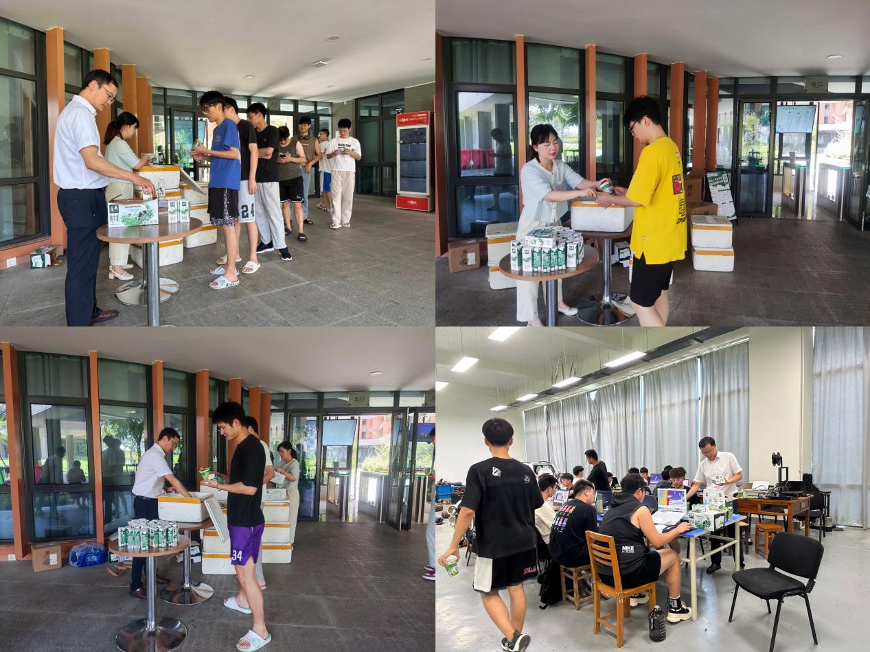 慰问过程中,学院老师深入学生宿舍考研自习室、学科竞赛训练室、雷电车队工作室,仔细询问学生的学习生活情况,并为同学们送上牛奶、凉茶、冰镇豆沙等慰问品。在雷电车队学生工作室,学院党委副书记秦广虎与筹备参加2023年第八届中国汽车工程学会巴哈大赛的27名留校学生进行交流。他表示,学校非常关心留校学生的在校状态,学院全力提供必要帮助与服务希望同学们充分利用好暑假时间,努力提升自己;要注意劳逸结合,防暑降温;要自觉遵守暑期留校学生相关管理规定,注意防火、防电、防诈骗、防溺水等安全;遇到困难或有关诉求要及时与指导老师或辅导员老师反馈。
