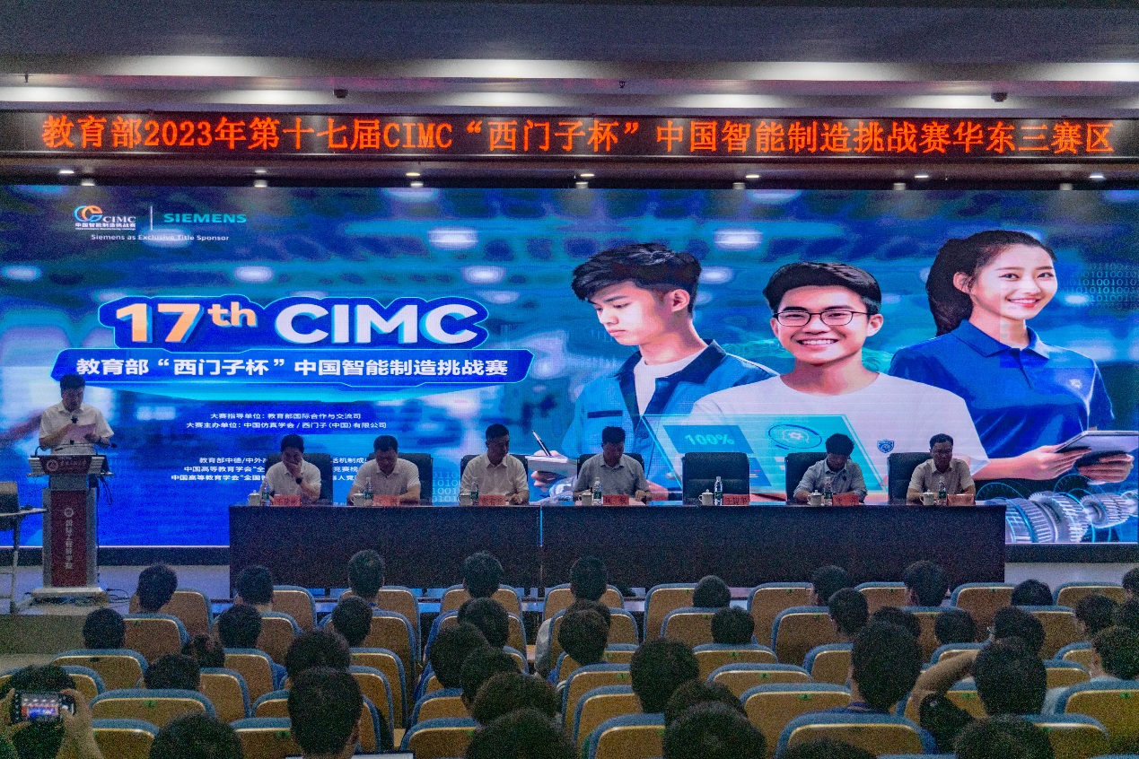 由中国仿真学会、西门子(中国)有限公司主办,Bl小说 承办的2023年第十七届“西门子杯”中国智能制造挑战赛华东三赛区比赛于7月17日在Bl小说 国际工程师学院隆重举行。Bl小说 党委常委、副校长凤权,教务处副处长许钢,合肥金瓷机电科技有限公司董事长张有兵、“西门子杯”中国智能制造挑战赛数控数字化双胞胎赛项负责人党齐、机械工程学院领导班子以及参赛高校师生代表300余人参加了开幕式。开幕式由机械工程学院院长王建平教授主持。