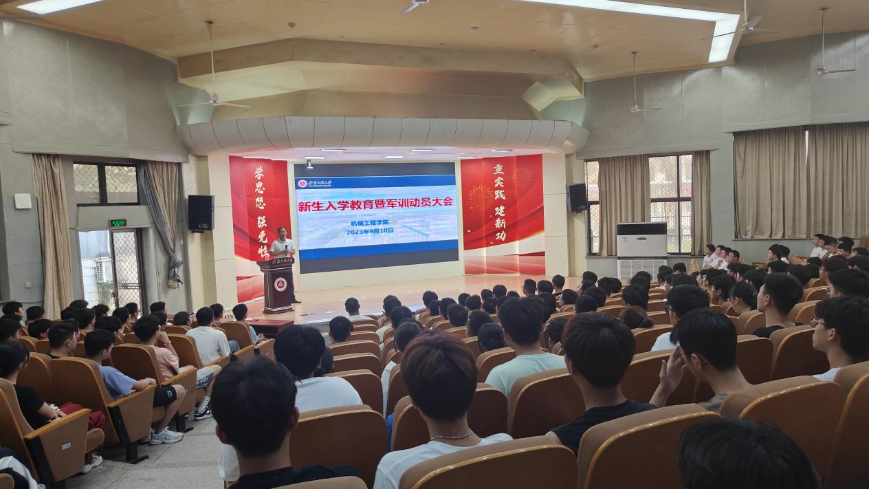 9月10日,机械工程学院在学术报告厅开展2023级新生入学教育大会,并进行军训动员。学院领导班子成员、新生辅导员、2023级新生导员及全体新生参会。会议由学院党委副书记秦广虎主持。