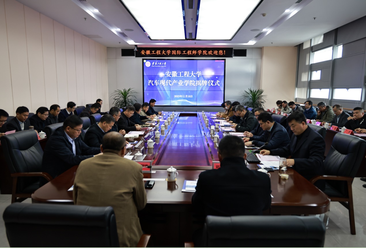 11月16日上午,Bl小说 汽车现代产业学院揭牌仪式暨成立大会在国际工程师学院校区隆重举行。安徽省汽车办人才和开放推进组副组长李左,安徽省教育厅高教处副处长朱永国,副校长周虹屏,芜湖市人才发展集团董事长杨少华出席活动。芜湖市发展和改革委员会、芜湖市经济和信息化局等单位负责人,奇瑞新能源汽车等13家汽车相关企业负责人,学校相关部门和学院负责人共30余人参加。活动由校党委常委、教务处处长周晓宏主持。