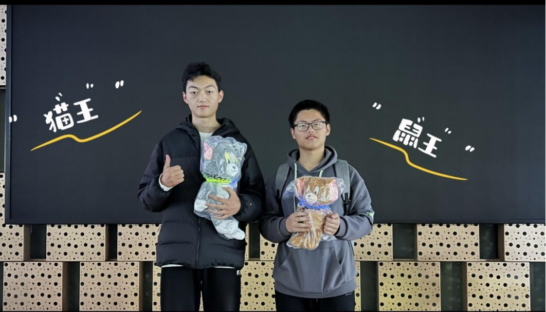 在一滴滴汗水和一声声喘息中,“杰瑞”的数量越来越多,“汤姆”则随之减少。游戏在欢快的氛围中接近尾声,“猫王”“鼠王”也在速度与激情的碰撞中诞生!他们手握“汤姆”与“杰瑞”的卡通玩偶,脸上洋溢出欢快的笑容。“猫和老鼠”心理趣味活动为学子们带来了别样的温暖,猫鼠之间或许互不相识,或许彼此相熟,但都在一次次藏匿、逃离与抓捕的欢乐氛围中碰撞出青春之火花,释放压力,感受欢乐。