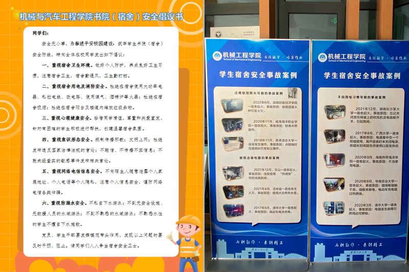 学院精心谋划,制作学生书院(宿舍)警示案例展板开展警示教育;制定学生书院(宿舍)安全宣传倡议书和宿舍检查评分细则并发放到宿舍;成立学生社区自我管理功能型党支部,发挥学生党员在学生自我管理中的先锋作用;摸排学生宿舍情况,建立重点关注台账,点面结合多渠道开展安全教育工作。