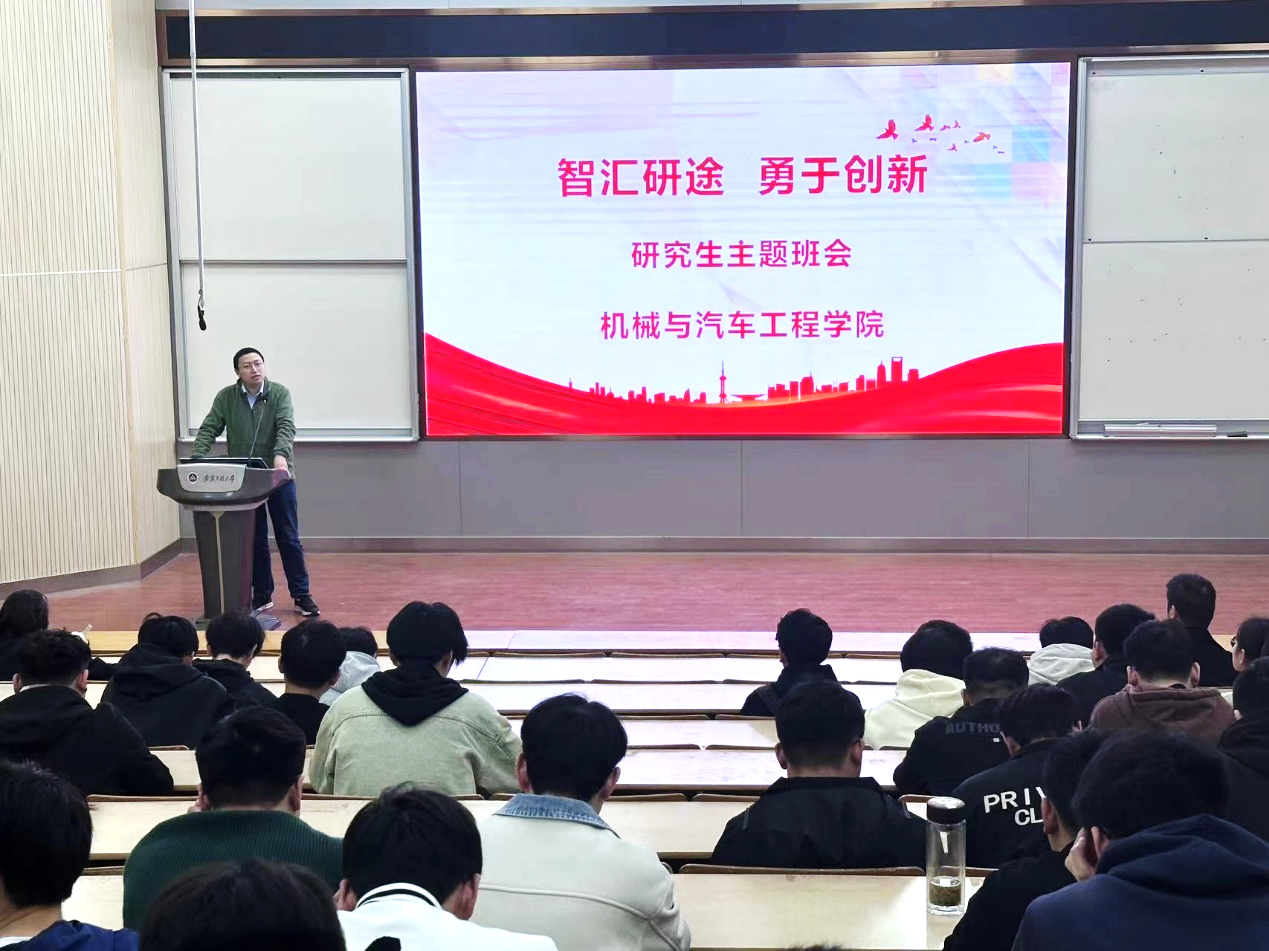 班会伊始,全体参会人员学习了习近平总书记关于发展新质生产力的重要论述。潘家保结合学习内容,号召广大研究生加强理论学习,提高政治素养,主动融入发展大局。针对学院研究生的学情和思想动态,潘家保强调研究生作是本科生的学长学姐,要争当表率、争做示范、走在前列,在学风建设、科技创新、学科竞赛等方面要成为排头兵和先锋员。潘家保对研究生提出三点要求:志存高远,认清形势,抢抓机遇,科研上主动契合产业发展趋势,弘扬钻研精神,以更高标准要求自己;深入发掘自身潜力,发挥优势,补足短板,增强自律,做好学业和职业规划,脚踏实地,成绩是干出来的;常怀感恩之心,恪守学生守则,模范遵守学校的各项要求,把心思和精力聚焦在学业上,不断提升个人综合实力,展现新时代青年大学生的责任与担当。