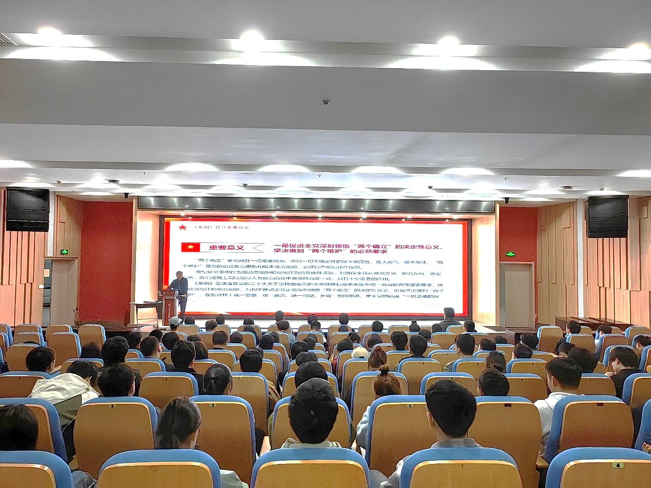 4月12日,Bl小说 党委书记魏长顺以“新修订《中国共产党纪律处分条例》的重要意义和亮点解读”为题在国际工程师学院赤铸报告厅给研究生四个党支部上党课,学院党委委员、副院长潘家保,研究生辅导员和研究生各支部全体党员参加专题党课。