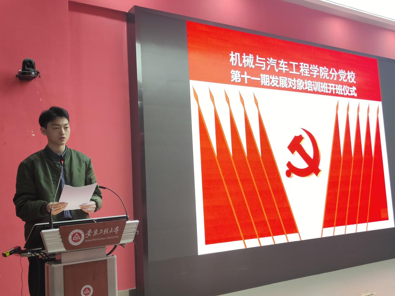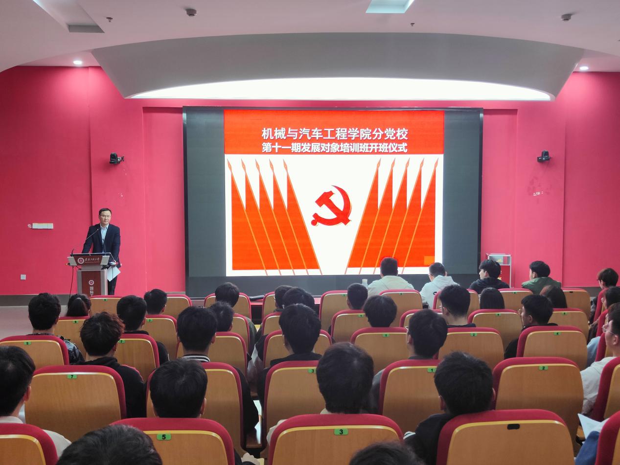 4月16日,机械与汽车工程学院第十一期发展对象培训班开班仪式在国际工程师学院校区小报告厅举行。学院党委副书记秦广虎、培训班班主任徐倩和全体学员出席。开班仪式由徐倩主持。