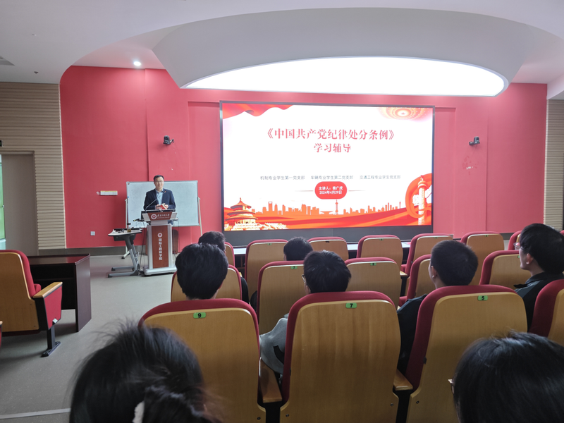 4月29日,Bl小说 机制专业学生第一党支部、车辆专业学生第二党支部、交通工程专业学生党支部在国际工程师学院校区梦溪报告厅开展《中国共产党纪律处分条例》联学活动。学院党委副书记秦广虎进行学习辅导。