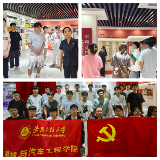 为了进一步加强学生党员的党性教育和法治观念,强化纪律意识和规矩观念,用党纪党规形成自我约束的思想和行动自觉。5月29日下午,学院机制专业学生第一党支部和机电专业学生党支部前往芜湖市中级人民法院司法陈列与廉政法治教育中心开展党纪教育主题党日实践活动。