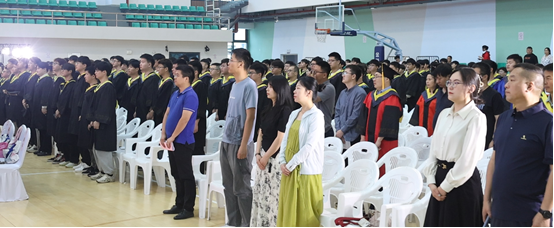 在风雨操场隆重举行2024届学生毕业典礼。学院领导班子、国际工程师学院校区相关单位负责人、职能部门代表、学生家长代表、校友代表、合作企业代表、公共课教师代表、退休教师代表、物业工作人员代表以及学院全体教职员工、2024届研究生和本科生共600余人参加了典礼,张季琴老师担任典礼主持人。