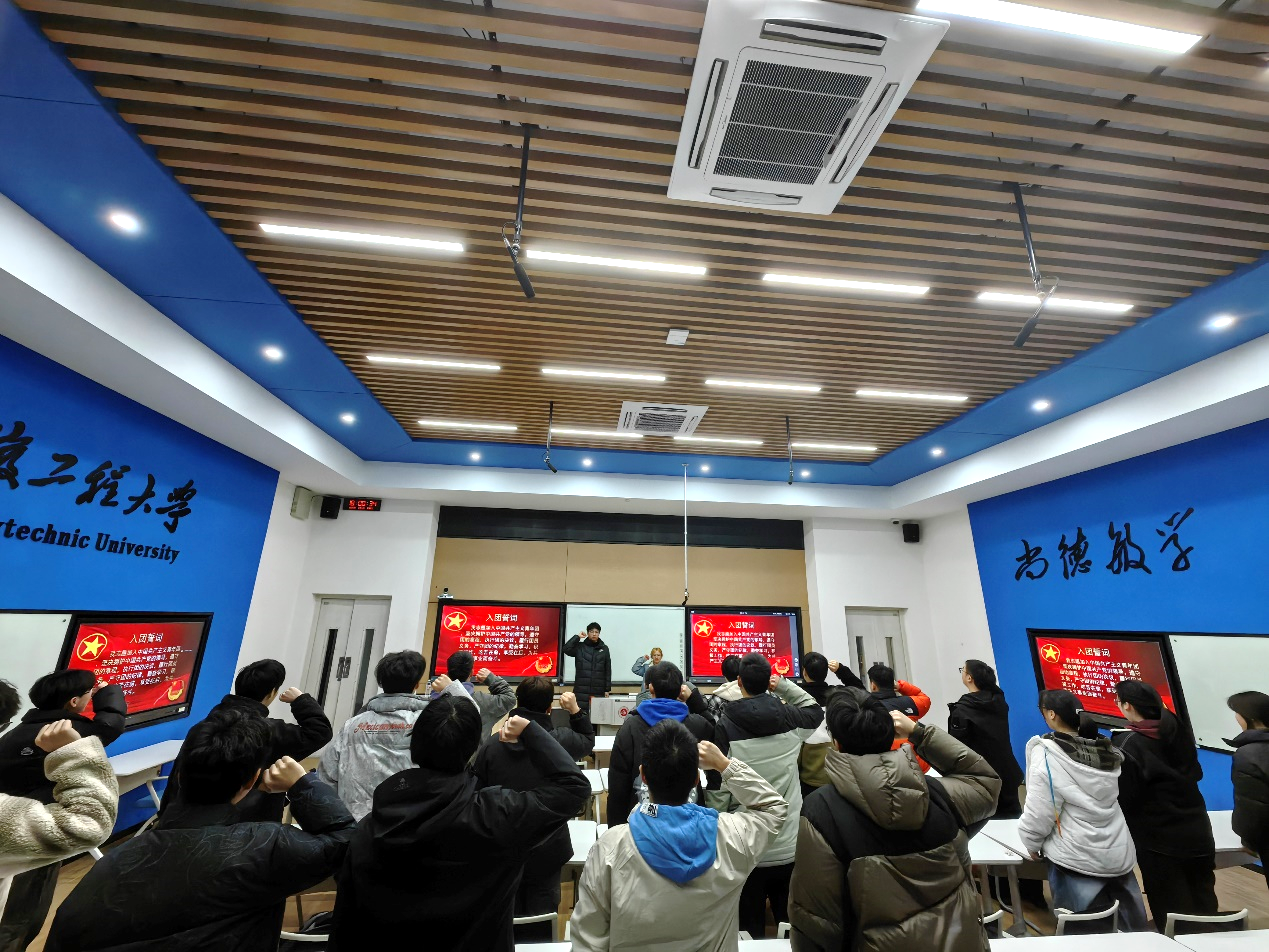 会议最后,支部团员重温了入团誓词,庄严的誓词激励着每一位团员不忘初心,牢记使命,以更加饱满的热情和昂扬的斗志投身到学习和生活中,为学校和学院发展不断贡献青春力量。