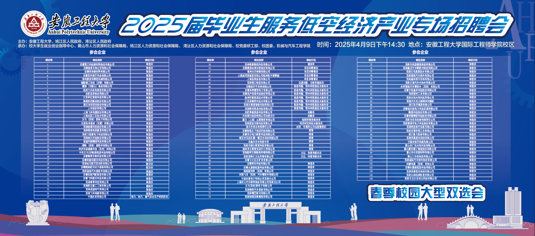 为持续推进毕业生就业服务工作,4月9日,2025届毕业生服务低空经济产业专场招聘会在国际工程师学院校区举行。本次招聘会由Bl小说 、鸠江区人民政府、湾沚区人民政府主办,校大学生就业创业指导中心、校党委研工部、校团委、Bl小说 承办,来自省内外100余家用人单位来校招聘人才。