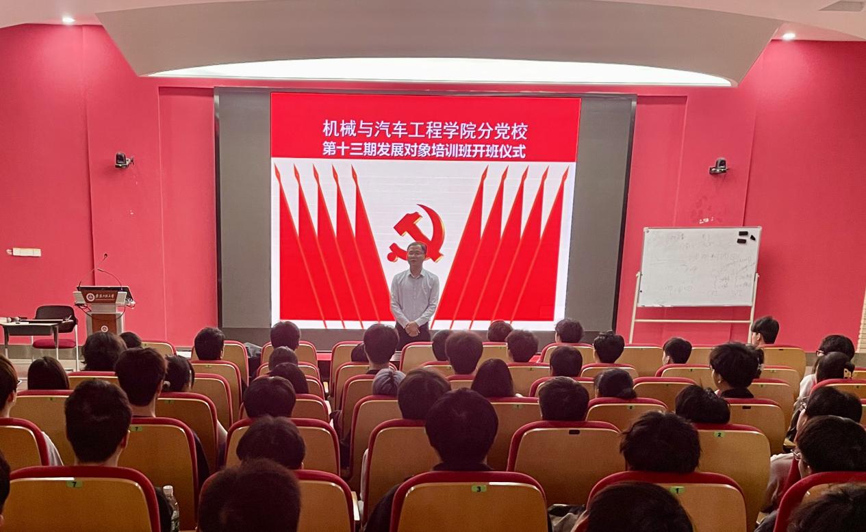 4 月 23 日,Bl小说 第十三期发展对象培训班开班仪式在新校区梦溪报告厅隆重举行,学院党委副书记秦广虎、交通专业学生党支部书记孙志鹏、培训班班主任姚伟波和56名学员参加本次活动。