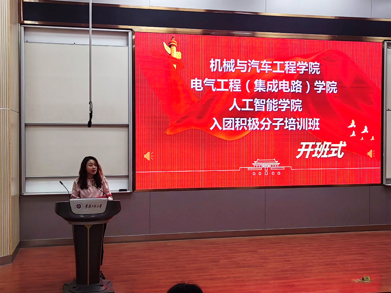 开班活动在庄严雄壮的国歌声中拉开帷幕。何祥玲代表校团委向新一批入团积极分子表示祝贺并提出三点希望:第一,志存高远,做“心中有火”的追光者,主动学习党的创新理论,认真研读经典著作,从马克思主义基本原理与中国具体实际相结合的伟大实践中找准前行方向;第二,脚踏实地,做“眼里有活”的实干家,树立正确的学习态度,积极参加学科竞赛、科研活动和共青团组织的各类活动,培养创新思维和实践能力,积极参与“我为同学办实事”活动,在解决同学“急难愁盼”中锤炼本领;第三,严于律己,做“手中有戒”的清醒人,扣好人生的“第一粒扣子”,严格遵守团的纪律和学校的各项规章制度,线上线下言行举止文明得体,展现出新时代青年的良好精神风貌,以“团徽在胸,责任在肩”的自觉,守护团组织的先进性和纯洁性。