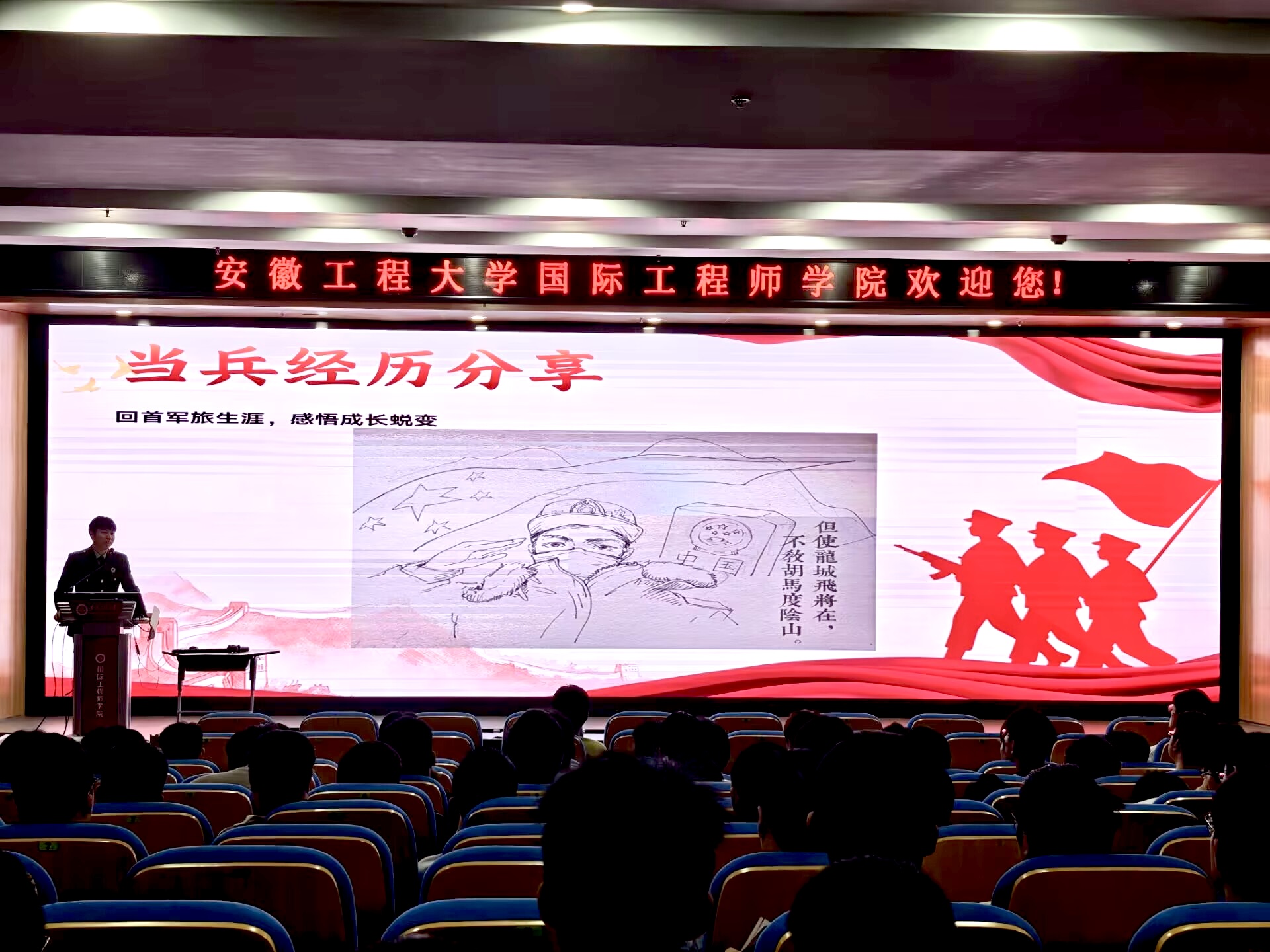 退役复学学生代表机制215李杰同学围绕自己的入伍经历,分享了精彩的军旅生活和成长感悟,激发了在场学生的爱国情怀和参军热情。李杰同学在退役复学之后开启考研新征程,通过“退役大学生士兵”专项计划成功考取研究生,用个人真实案例让同学们清晰了解到士兵计划的报考流程和优待政策。