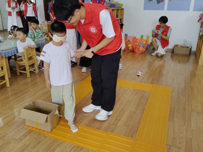 活动中,志愿者首先通过互动问答引入主题,向孩子们讲解盲道作为视障人士“出行之眼”的重要功能。在模拟体验环节,孩子们戴上眼罩,在志愿者引导下亲身感受盲道行走。通过设置障碍物等情景模拟,让参与者深刻体会到视障人士日常出行的困难。动画视频展示环节则通过生动形象的画面,让孩子们认识到占用盲道可能造成的危害。
